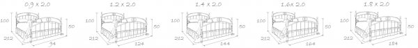 Размер спального места 90*200 / 120*200 / 140*200 / 160*200 / 180*200
