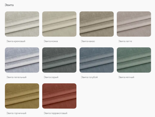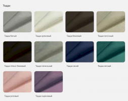 | Цвет | БЕЖЕВЫЙ / БЕЛЫЙ / ГОЛУБОЙ / ЖЕЛТЫЙ / ЗЕЛЕНЫЙ / КОРИЧНЕВЫЙ / ОРАНЖЕВЫЙ / СЕРЫЙ / СИНИЙ / СИРЕНЕВЫЙ / КОФЕ |