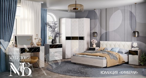 Модульная спальня Кимберли (Мебелони) – товар доступен к покупке в интернет-магазине samarskiy-dommebeli.ru. Цена – 90 561 руб. без учета доставки. Стоимость дополнительных услуг и сроки получения мебели уточняйте у менеджера. Возможен безналичный расчет, оплата по карте на сайте.